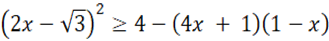 Podnosimy różnicę algebraiczną do kwadratu zgodnie ze wzorem skróconego mnożenia na kwadrat różnicy. Wymnażamy czynniki z obu nawiasów znajdujących się po prawej stronie nierówności. Przenosimy niewiadome na lewą stronę nierówności a liczby na prawą stronę. Wyciągamy x przed nawias i podzielimy nierówność przez wyrażenie znajdujące się w nawiasie. Następnie zmieniamy znak nierówności, ponieważ dzielimy przez liczbę ujemną. Na koniec wyznaczamy przedział, który spełnia naszą nierówność.
