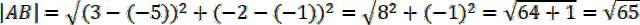 Skorzystaj ze wzoru na długość odcinka w układzie współrzędnych: