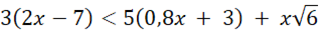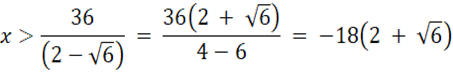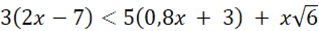 Wymnażamy nawiasy przez czynniki stojące przed nimi i przenosimy niewiadome na lewą stronę nierówności a liczby na prawą stronę. Wyciągamy x przed nawias i dzielimy nierówność przez wyrażenie znajdujące się w nawiasie. Zmieniamy znak nierówności, ponieważ dzielimy przez liczbę ujemną. Następnie usuwamy niewymierność z mianownika, mnożąc licznik i mianownik przez