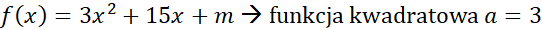 W tym zadaniu wyznacz liczbę m, dla której funkcja f(x) = 3x2 + 15x + m ma zbiór wartości określony przedziałem <-10; ∞).