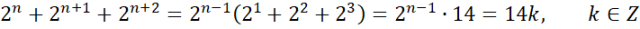 Wykaż, że suma dwóch kolejnych potęg liczby 2 o wykładnikach całkowitych dodatnich jest podzielna przez 6, a suma trzech kolejnych potęg jest podzielna przez 14.