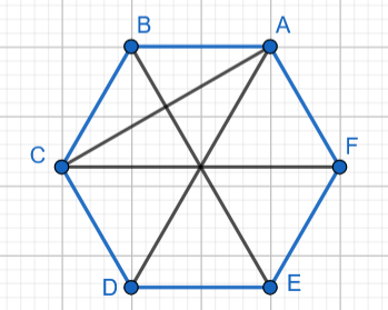 Skorzystaj z tego, że sześciokąt foremny składa się z 6 trójkątów równobocznych, a przekątna AC zawiera dwie wysokości tych trójkątów i na tej podstawie wyznacz długość boku sześciokąta, a następnie pole trójkąta prostokątnego ACD.