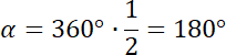 jest w połowie drogi po tarczy zegara, a więc zakreśla kąt półpełny. Miara tego kąta to
