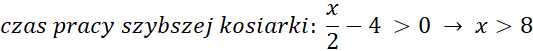 Wtedy na podstawie treści polecenia możemy zapisać wydajność nowej kosiarki: