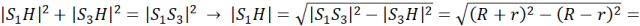 Zaznaczony trójkąt S1S3H jest trójkątem prostokątnym, więc możemy zapisać twierdzenie Pitagorasa: