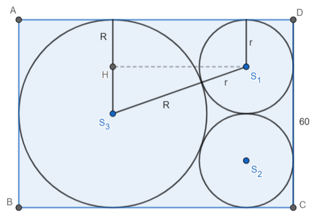 Musisz obliczyć długość pozostałego boku prostokąta na podstawie zależności między okręgami i prostokątem.