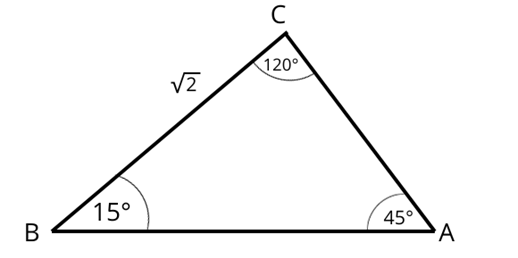Narysuj rysunek pomocniczy. Oblicz długość boku AB korzystając z twierdzenia sinusów. Następnie oblicz długość boku AC z twierdzenia cosinusów.