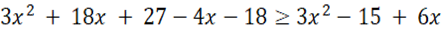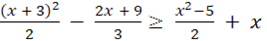 W pierwszej nierówności mnożymy nierówność przez 6, by pozbyć się ułamków. Następnie mnożymy różnicę i sumy algebraiczne przez liczbę stojącą przed nawiasem. Przenosimy niewiadome na lewą stronę nierówności a liczby na prawą stronę. Dzielimy nierówność przez liczbę stojącą przy x oraz zmieniamy znak nierówności, ponieważ dzielimy przez liczbę ujemną. Na koniec wyznaczamy przedział, który spełnia naszą nierówność.