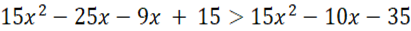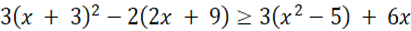 W drugiej nierówności mnożymy przez siebie nawiasy oraz nawias po prawej stronie nierówności przez wyrażenie stojące przed nawiasem. Przenosimy niewiadome na lewą stronę nierówności a liczby na prawą stronę. Dzielimy nierówność przez liczbę przy x oraz zmieniamy znak nierówności, ponieważ dzielimy przez liczbę ujemną. Następnie wyznaczamy przedział, który spełnia naszą nierówność. Na koniec należy podać zbiór, do którego należą liczby będące równocześnie rozwiązaniami dwóch nierówności i wypisać z niego wszystkie liczby całkowite.