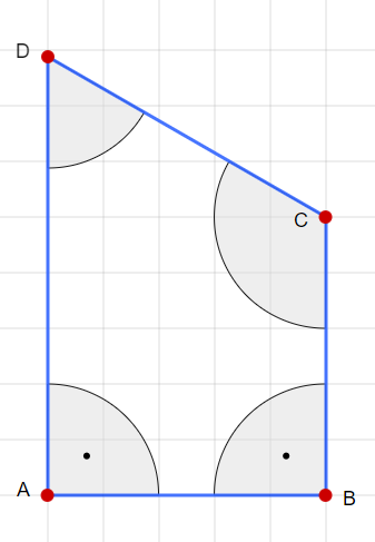 Kąty przy wierzchołkach A i B mają po 90°, kąt przy wierzchołku C ma 120°, a kąt przy wierzchołku D ma 60°.