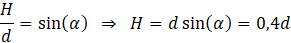 Oblicz objętość graniastosłupa prawidłowego czworokątnego, którego przekątna ma długość d i jest nachylona do podstawy pod kątem 𝛼 takim, że sin 𝛼 = 0,4.