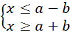 Przekształcamy dany przedział liczbowy oraz nierówność do podobnej postaci układu nierówności. Pamiętamy, że między nierównościami jest spójnik „lub” – zapis w postaci układu równań jest dla wygody. Zauważamy podobieństwa i układamy układ równań składający się z sumy i różnicy niewiadomych