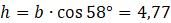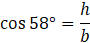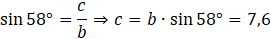 Oblicz długości odcinków h oraz c za pomocą funkcji cosinus, następnie wyznacz pole.