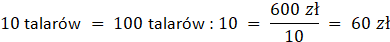 100 talarów = 300 zł ∙ 2 = 600 zł