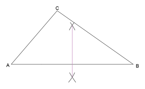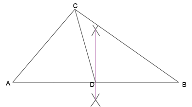 Poprowadź prostą łączącą punkt przecięcia prostej AB z wierzchołkiem C.