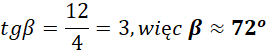 Wyznacz miary kątów między przekątnymi ścian bocznych bryły, a jej podstawą.