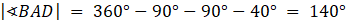 Z sumy kątów w czworokącie: