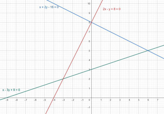 Wyznacz wysokość trójkąta ABC poprowdzoną z wierzchołka C, jeśli jest ograniczony prostymi .