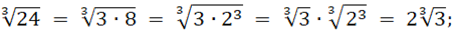 Aby wyłączyć czynnik przed znak pierwiastka, należy rozłożyć liczbę pod pierwiastkiem na iloczyn co najmniej dwóch liczb. Następnie rozbić podpierwiastkowy iloczyn na iloczyn pierwiastków. Okazuje się, że niektóre z nich łatwo da się spierwiastkować te, które uległy spierwiastkowaniu zapisujemy przed znakiem pierwiastka, natomiast liczby, których nie da się spierwiastkować, zostawiamy pod pierwiastkiem i dokonujemy mnożenia pierwiastków: