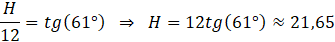 Wyznacz objętość i pole boczne graniastosłupa prawidłowego trójkątnego o krawędzi podstawy 12, w którym przekątna ściany bocznej tworzy z krawędzią podstawy kąt równy 61°.