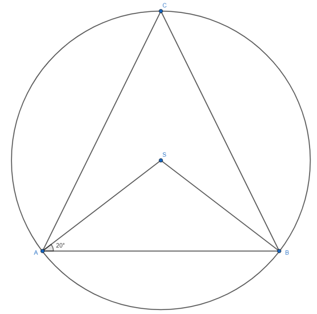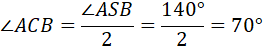 Kąt ACB jest kątem wpisanym opartym na tym samym łuku co kąt środkowy ASB, więc: