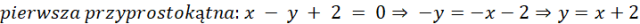 Na podstawie równania prostej, w której zawiera się jedna z przyprostokątnych trójkąta równoramiennego oraz współrzędnych jednego z jego wierzchołków wyznacz równania prostych, które tworzą dwa jego pozostałe boki.