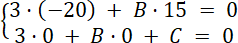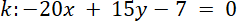 Rozwiąż układ równań z dwoma równaniami, pierwsze powstało z warunku prostopadłości prostych, a drugie z danego w treści zadania współrzędnych punktu.
