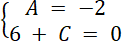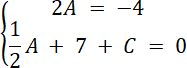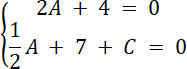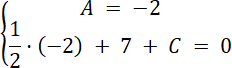 Rozwiąż układ równań z dwoma równaniami, pierwsze powstało z warunku prostopadłości prostych, a drugie z danego w treści zadania współrzędnych punktu.