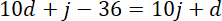 Równanie nieoznaczone, to znaczy, że cyfra jedności może być dowolna, ale taka, żeby d-j było równe 4, j nie może być równe 0, gdyż liczba dwucyfrowa z cyframi zapisanymi w odwrotnej kolejności nie byłaby wtedy dwucyfrowa tylko jednocyfrowa. Warunki, jakie musi spełnić j to: