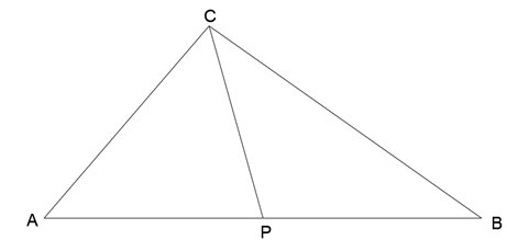 Udowodnij, że jeśli punkt P należy do boku BC w trójkącie ABC to zachodzi nierówność