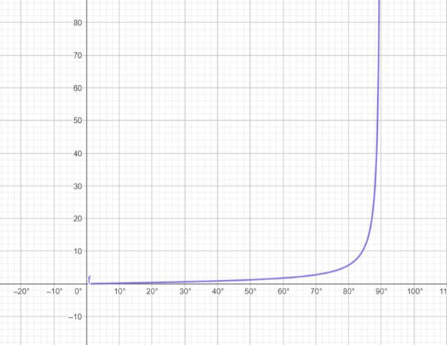 Narysuj wykres funkcji tangens dla x z przedziału (0°; 90°).
