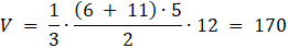 Dany jest ostrosłup o wysokości równej 12, którego podstawa jest taka sama jak na rysunku.