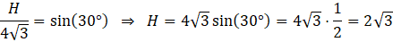 Wyznacz objętość graniastosłupa prawidłowego sześciokątnego, którego krótsza przekątna o długości 4√3 tworzy z podstawą kąt o mierze 30°.