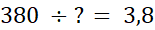 Dopisz przecinek na końcu liczby. Dokładnie: 380,0. Widzisz, że iloraz ma przecinek przesunięty o dwa miejsca w lewo. Musisz znaleźć taki dzielnik, który będzie posiadał dwa zera, czyli 100.