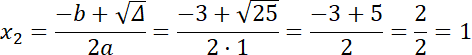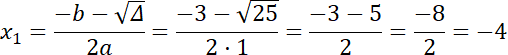 ∆ = b2 – 4ac = 32 – 4 · 1 · (–4) = 25