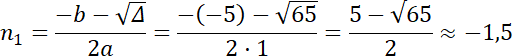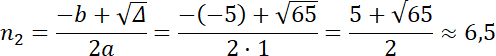 ∆ = b2 – 4ac = (–5)2 – 4 · 1 · (–10) = 65