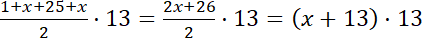 (1 + x) + (3 + x) + (5 + x) + … + (25 + x) = 130