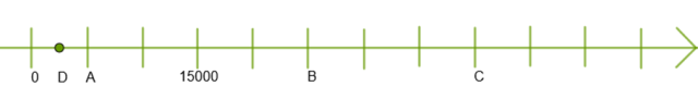 Wskaż pozycję punktów A, B, C, D na osi.
