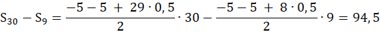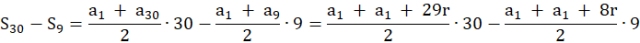 W tym zadaniu musisz obliczyć sumę wyrazów od dziesiątego do trzydziestego ciągu arytmetycznego.