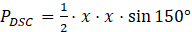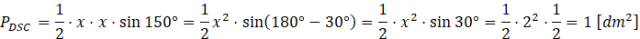 Wykonaj rysunek do zadania. Wyznacz miarę kąta , korzystając z kątów przyległych. Znając pole prostokąta, oblicz długość x rozwiązując równanie . Oblicz pole trójkąta DSC podstawiając do wzoru .