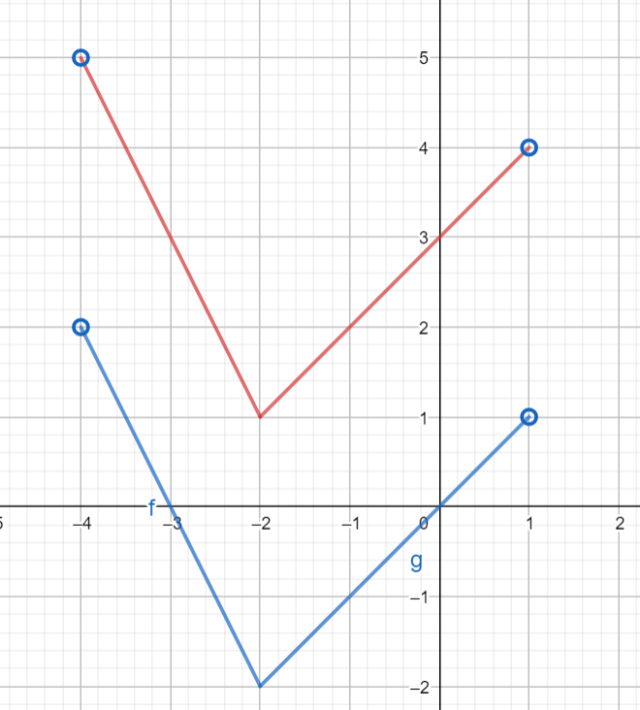 Aby naszkicować wykres funkcji g, wykres funkcji f musisz przesunąć o 3 jednostki w górę.