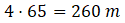 A. 260 m, ponieważ II. 1 cm na tej mapie to 65 m w rzeczywistości, a od pensjonatu do jeziora jest 4 razy dalej.