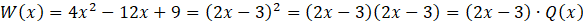Aby znaleźć wielomian P(x) przedstaw wielomian W(x) w postaci iloczynu wielomianów Q(x) oraz drugiego wielomianu. W tym celu posłuż się wzorem skróconego mnożenia na kwadrat różnicy. Wyznaczony wielomian jest wielomianem P(x).