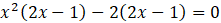Aby rozwiązać równanie, wszystkie jednomiany przenieś na jedną stronę. Z kolejnych par wyrazów wyłącz przed nawias wspólne czynniki. Następnie, wyłącz czynnik 2x - 1 przed nawias w całym wyrażeniu po lewej stronie równania. Zapisz alternatywę nierówności wynikających z obu czynników lewej strony równania. Każde równanie rozwiąż osobno. Na koniec zsumuj otrzymane rozwiązania do jednego przedziału.