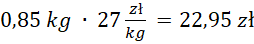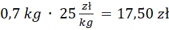 Pomnóż cenę za kilogram przez ułamek kilograma, który kupił klient.