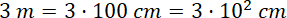 W tym zadaniu musisz zamienić 3 metry na centymetry i wynik zapisać w notacji wykładniczej.