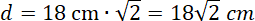 W tym zadaniu musisz obliczyć długość przeciwprostokątnej w trójkącie prostokątnym równoramiennym, znając długość ramienia: 18 cm.