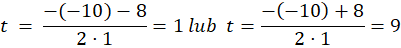 ∆ = b2 – 4ac = (-10)2 – 4 · 1 · 9 = 64