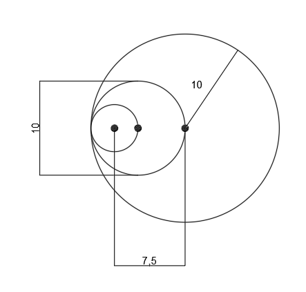 W tym zadaniu oblicz i wpisz wskazane długości odcinków oraz odległości między punktami, wiedząc, że zaznaczone punkty to środki okręgów.