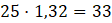 Oblicz wartość liczby a, jeśli jest ona o 32% większa od liczby 25.